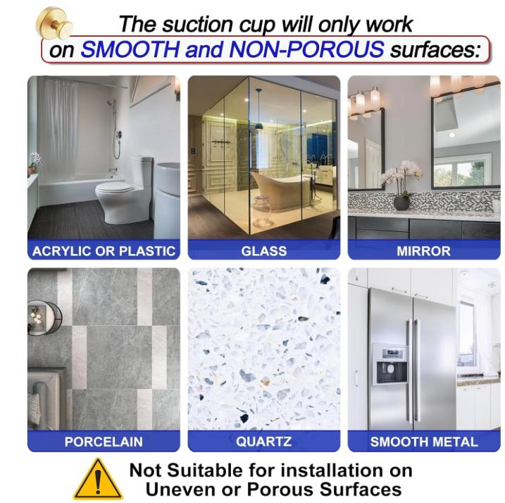 ✅ Yes — when installed on smooth, non-porous surfaces like tile, glass, mirror, or metal. The vacuum suction base combined with the twist-lock design creates a strong seal that can support up to 15 lbs. Once properly installed and left to set, they stay firmly in place — even in humid bathrooms.
