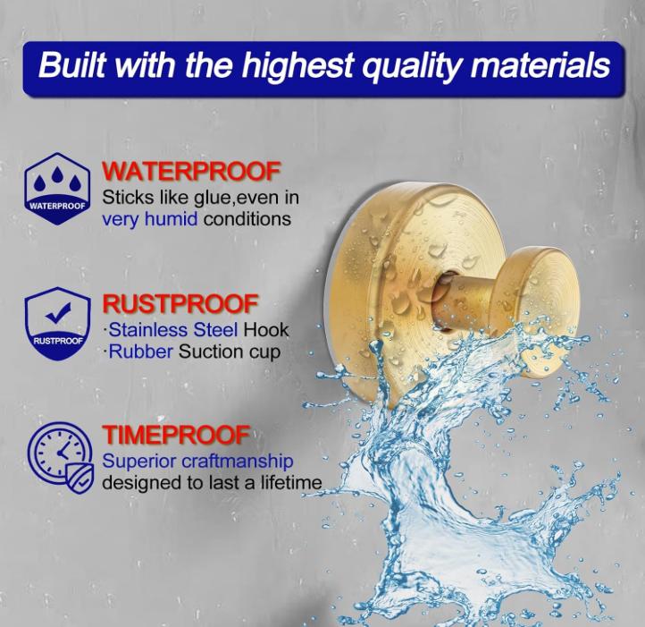 ✅ Absolutely. They’re made from rustproof stainless steel with a waterproof suction base designed for high-humidity areas. Steam and water won’t weaken the hold when applied correctly, making them perfect for hanging towels, loofahs, robes, or shower accessories.